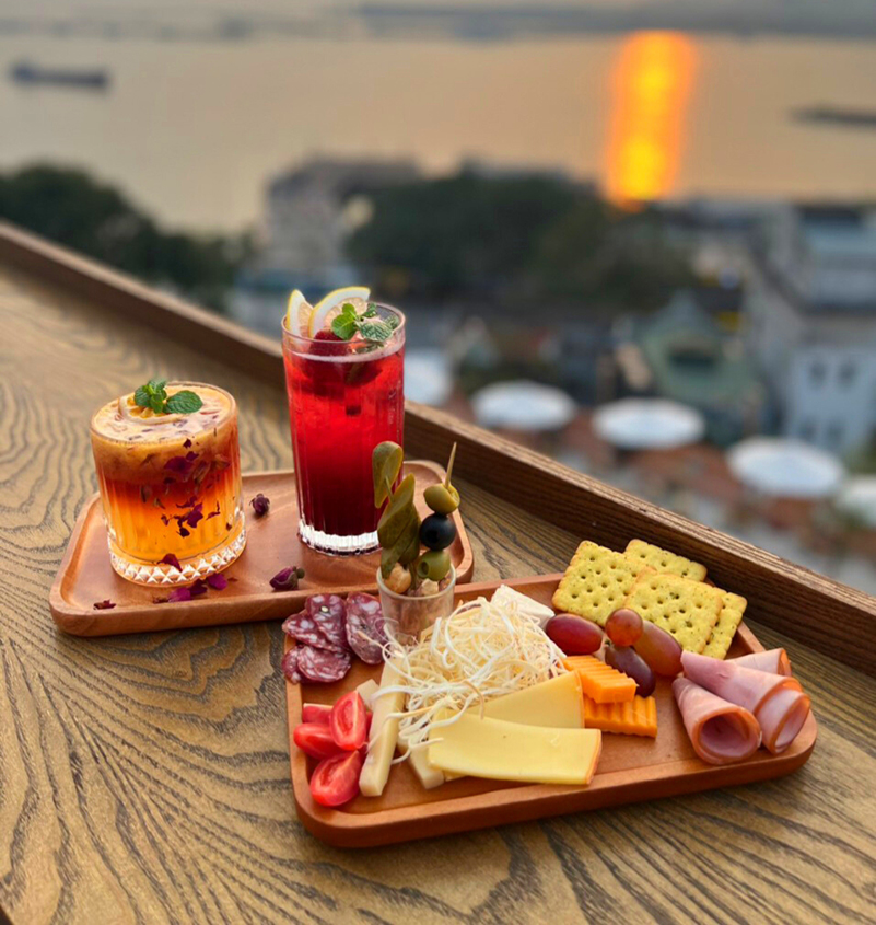 Vé 90k đã có đồ uống (Trà Xoài Gừng, Cà Phê Kem Muối ngon ổn), menu đa dạng nhưng vị chưa “đỉnh”. Quán rộng, thoáng, nhân viên dễ thương, nếu đến vào khoảng 5h chiều, bạn sẽ bắt trọn khoảnh khắc hoàng hôn đỏ rực.